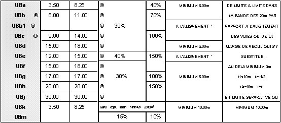 Les zones UBd, UBf, UBg, UBh, UBJ :